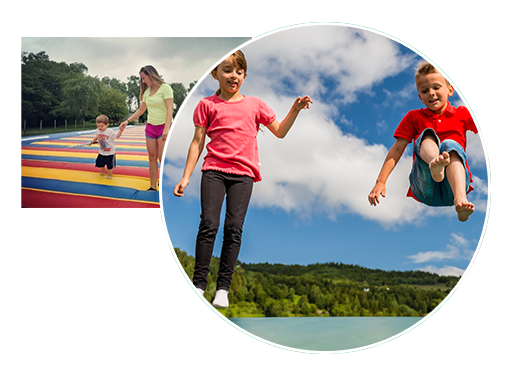 This medium size 25x40 feet (7.6x12.2 meter) inflatable trampoline comes with a large jumping area and soft bounce surface, making it ideal for almost all types of setup locations.